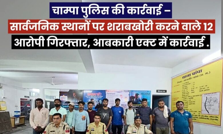 “चांपा पुलिस ने सार्वजनिक स्थानों पर शराबखोरी करने वाले 12 आरोपियों को गिरफ्तार, आबकारी अधिनियम के तहत कार्रवाई”