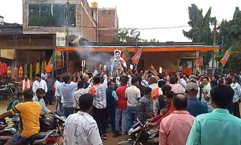 पूर्व भाजपा जिला अध्यक्ष कृष्णकांत चंद्रा ने विधायक बलेश्वर साहू के विरोध में किया पुतला दहन धरना-प्रदर्शन