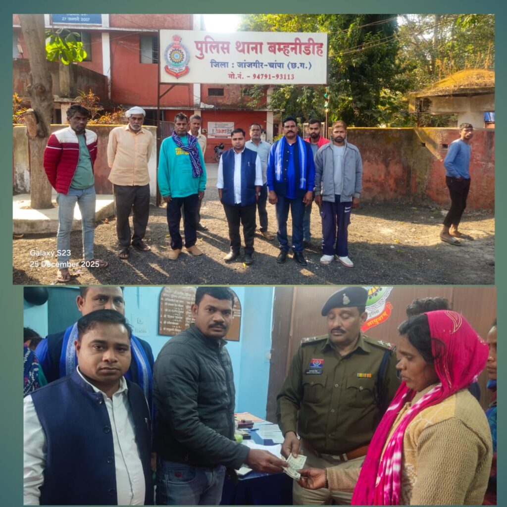 मामले की गंभीरता को देखते हुए भीम आर्मी के कार्यकर्ता बम्हनीडीह थाना पहुँचे और प्रशासन से पीड़ित परिवार को 25 हजार रुपये की सहायता राशि देने की मांग रखी। गुस्साए परिजनों और बढ़ती भीड़ को शांत करने हेतु तहसीलदार महोदय ने तात्कालिक व्यवस्था के तहत 20 हजार रुपये की सहायता राशि प्रदान की, जिसके बाद स्थिति नियंत्रित हुई।
