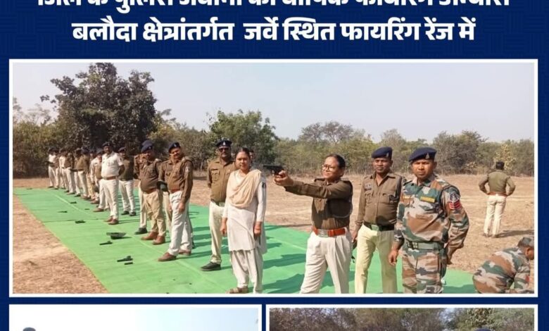 जिले के पुलिस जवानों का वार्षिक फायरिंग अभ्यास बलौदा क्षेत्रांतर्गत स्थित जर्वे फायरिंग रेंज में विधिवत रूप से प्रारंभ किया गया है। यह अभ्यास पुलिस अधीक्षक श्री विजय कुमार पाण्डेय (आईपीएस) के निर्देशन में आयोजित किया जा रहा है। फायरिंग अभ्यास का मुख्य उद्देश्य जिले में तैनात पुलिस जवानों की निशानेबाजी क्षमता को और अधिक सशक्त बनाना, उनमें आत्मविश्वास का विकास करना तथा आधुनिक हथियारों के सुरक्षित एवं प्रभावी संचालन का प्रशिक्षण देना है।