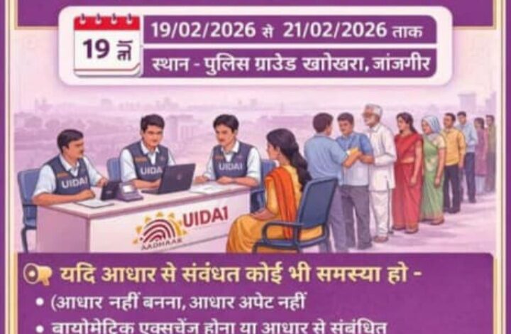 प्राप्त जानकारी के अनुसार शिविर का आयोजन पुलिस ग्राउंड खोखरा, जांजगीर में किया जाएगा। इस विशेष शिविर का उद्देश्य आम नागरिकों की आधार से संबंधित समस्याओं का त्वरित समाधान करना है।