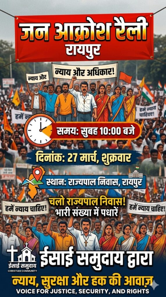 रायपुर में ईसाई समुदाय की विशाल जन आक्रोश रैली 27 मार्च को