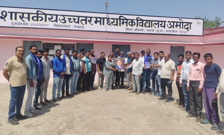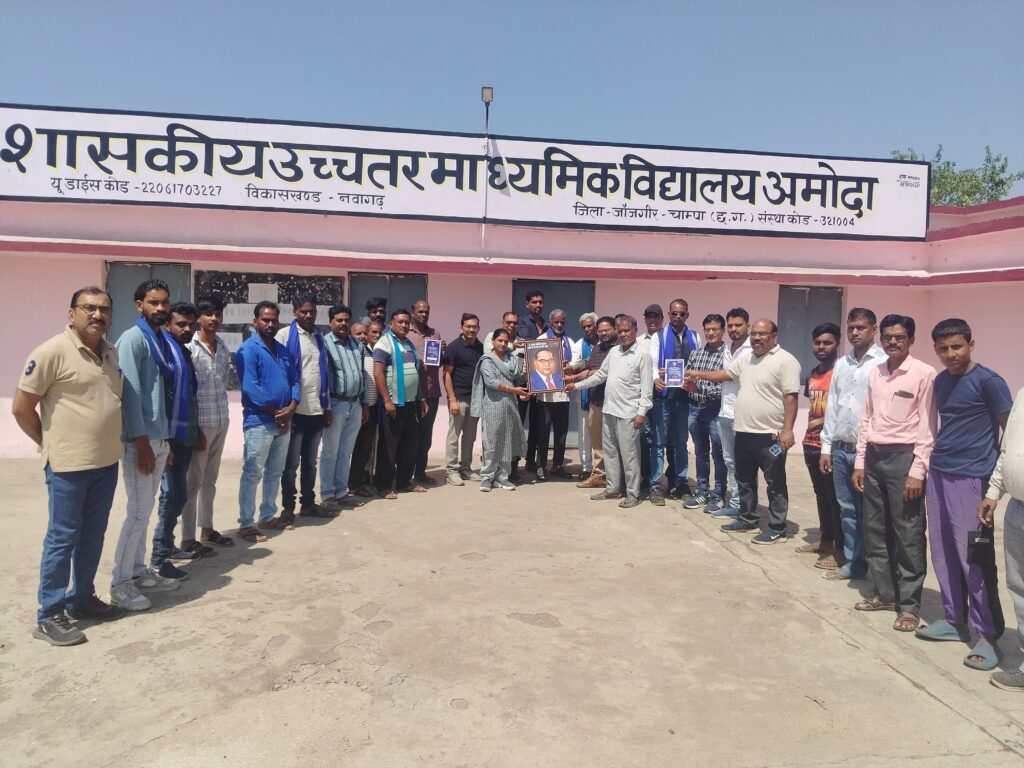 जांजगीर-चांपा। नवागढ़ ब्लॉक के अंतर्गत ग्राम अमोदा में विश्व रत्न डॉ. भीमराव अंबेडकर जयंती के पावन अवसर पर सर्व समाज द्वारा एक सराहनीय पहल की गई। दिनांक 11 अप्रैल 2026 को ग्राम अमोदा के प्रबुद्ध नागरिकों ने विभिन्न शासकीय विद्यालयों में पहुंचकर आमंत्रण पत्र के साथ-साथ डॉ. भीमराव अंबेडकर की प्रतिमा चित्र सप्रेम भेंट कर जयंती कार्यक्रम में शामिल होने हेतु आमंत्रित किया।