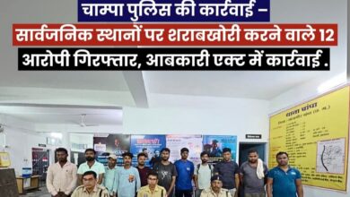 “चांपा पुलिस ने सार्वजनिक स्थानों पर शराबखोरी करने वाले 12 आरोपियों को गिरफ्तार, आबकारी अधिनियम के तहत कार्रवाई” “गिरफ्तार आरोपियों…