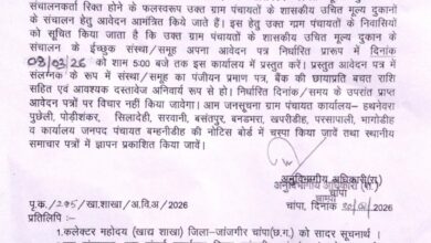 - अनुविभाग चांपा में 10 शासकीय उचित मूल्य दुकानों के संचालन हेतु आवेदन आमंत्रित